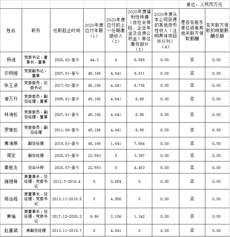 南寧交通投資集團有限責任公司企業(yè)負責人2020年度薪酬情況