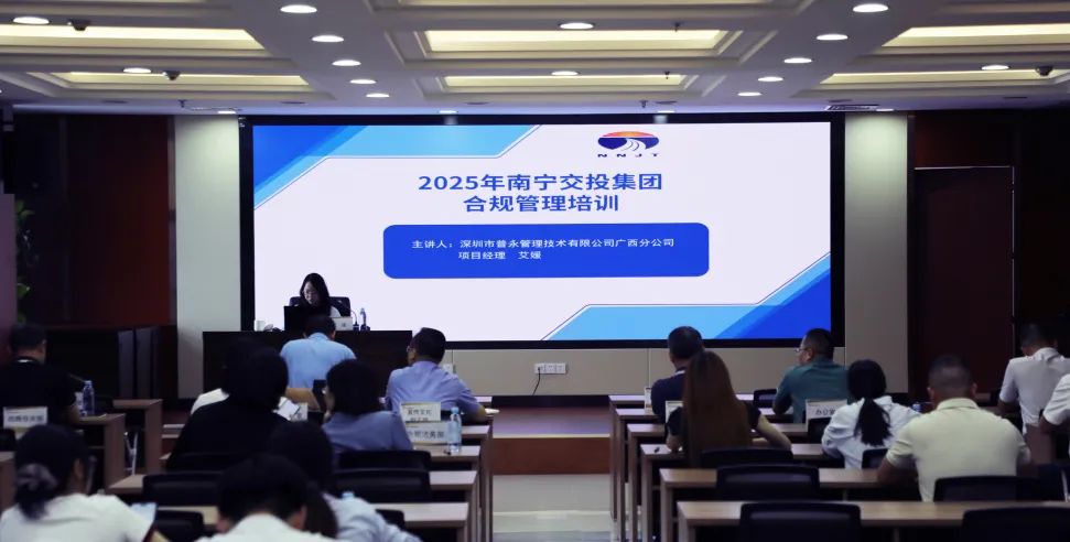 6月30日,南寧交投集團(tuán)邀請深圳市普永管理技術(shù)有限公司廣西分公司艾媛經(jīng)理開展企業(yè)合規(guī)管理培訓(xùn)。集團(tuán)公司副總經(jīng)理羅維松、黃海燕,各部門、各子(集團(tuán))公司相關(guān)人員參加培訓(xùn)。